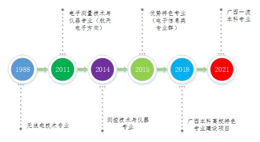 专业前身为1988年航空航天工业部在开云设置的无线电技术专业。经历三十余年建设发展,于2014年设置测控技术与仪器本科专业,专业发展历程如图1所示。专业累计为社会培养三千余名专业技术人才。