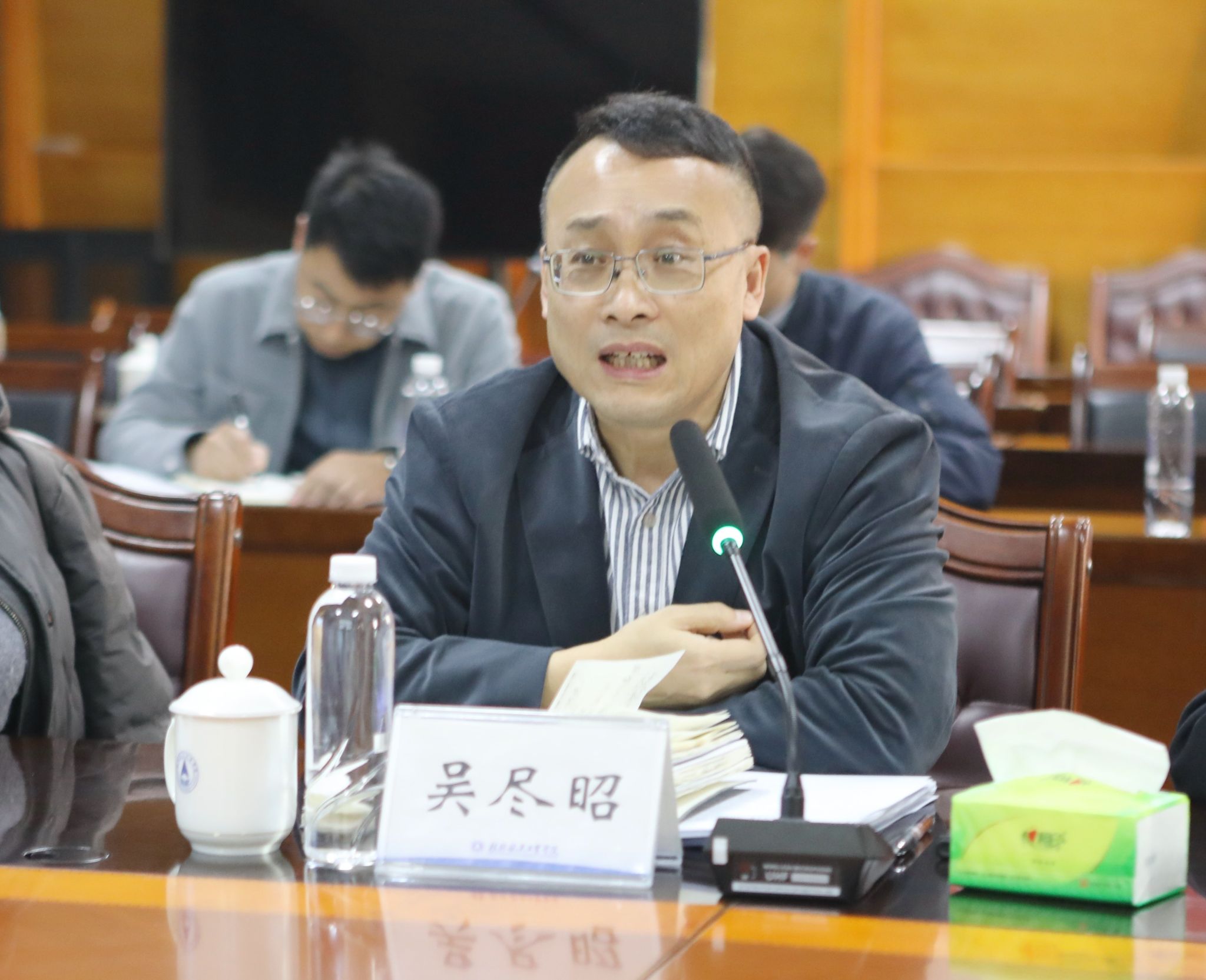 吴尽昭代表学校对专家组一行表示热烈欢迎,并向自治区教育厅一直以来给予学校发展的关心和支持致以衷心感谢。他指出,硕士学位授予单位立项建设是学校提升办学层次、优化学科专业结构、增强核心竞争力的战略举措,关乎学校长远发展大局。学校始终将该项工作摆在突出位置,系统谋划、精准发力,稳步推进各项建设任务落地见效。此次现场核验既是对学校建设成效的全面检验,更是推动工作提质增效的重要契机。学校将以最诚恳的态度听取专家组指导意见,切实将各项建设任务做实、做细、做到位。同时,也希望各位专家在学校硕士点建设和“十五五”规划等方面继续给予指导,助力学校在高质量发展道路上实现新跨越。