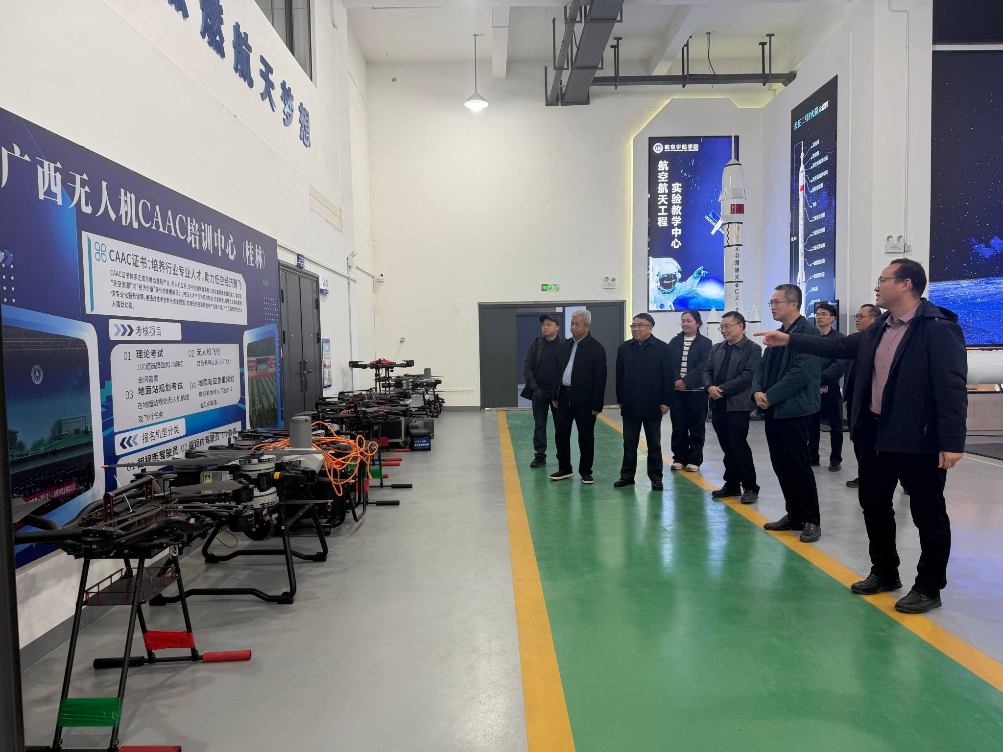 现场核验工作结束后,在张烈平的陪同下,专家组一行前往开云航空宇航学院,进行实验室参观考察。专家组先后参观了航空航天器件测试平台、智能制造实训等核心区域,认真听取了实验室负责人关于设备配置、教学科研融合、成果转化应用等情况的介绍。专家组对学校立足区域产业发展需求、聚焦航空航天应用型人才培养的定位给予充分肯定,认为实验室完善的实践教学环境能够有效支撑硕士层次人才创新能力培养,为相关硕士学位点建设奠定了实践基础。