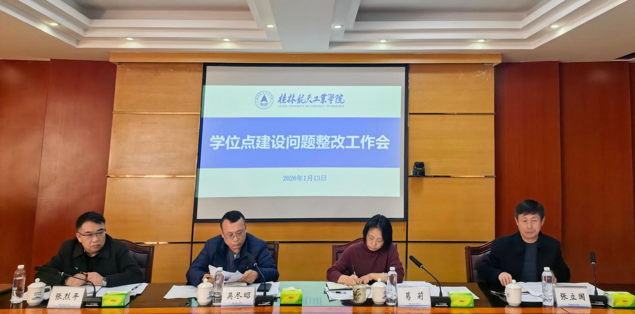 1月13日下午,学校在飞天楼517会议室召开学位点建设问题整改工作会议。校长吴尽昭,副校长葛莉、张烈平、张立国出席会议。党校办、发规处、人事处、教务处、科技处、财务处、评估处负责人以及电子信息、机械、工程管理三个硕士学位点负责人参加会议。会议由副校长张立国主持。