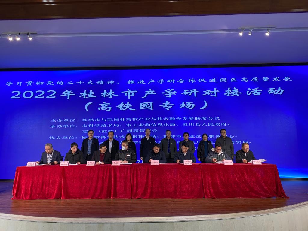 据悉,此次活动由桂林市与驻桂林高校产业与技术融合发展联席会议主办,桂林市科学技术局、桂林市工业和信息化局、灵川县人民政府、高铁(桂林)广西园管委会协办,相关领导、企业代表、高校代表、媒体代表等近百人参加了此次活动。