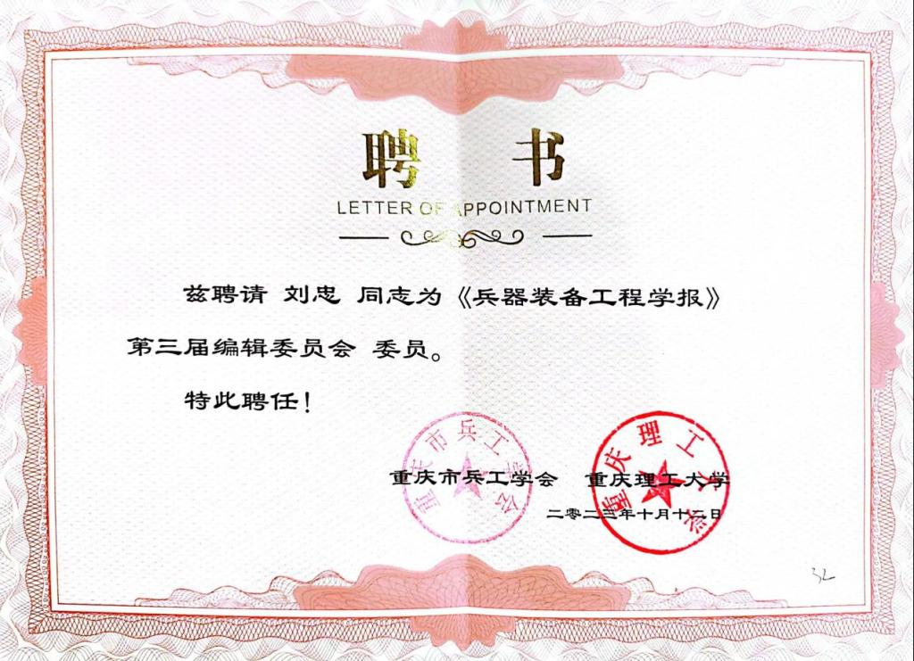 同期刘忠教授受邀参加了CSCD、中文核心期刊《兵器装备工程学报》第三届编委会、第二届青年编委会成立大会暨期刊发展研讨会,并获聘为期刊编委,这是学校获批广西特种工程装备与控制重点实验室以来,该实验平台教师首次参加此领域内会议,旨在了解新的技术领域的最新进展和发展趋势,为进一步扩大学校自治区级重点实验室的研究领域及在同行中的学术影响力和知名度。