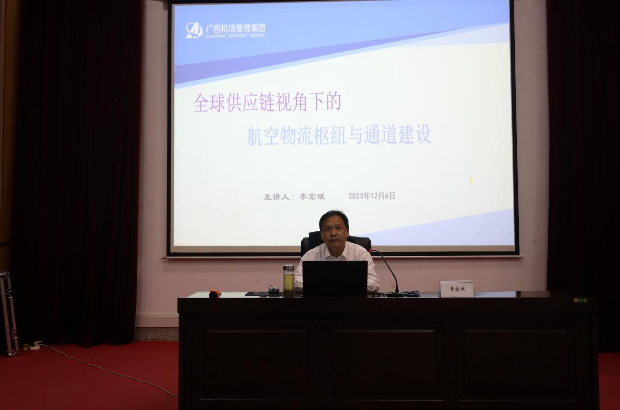 12月6日下午,管理学院邀请广西机场管理集团党委委员、工会主席,法学博士、高级工程师、高级经济师李宏斌在致远楼108教室,为开云物流工程、物流管理2个专业的学生作题为《全球供应链视角下的航空物流枢纽与通道建设》的专题讲座,管理学院张一纯院长主持,部分物流专业的老师聆听了讲座。