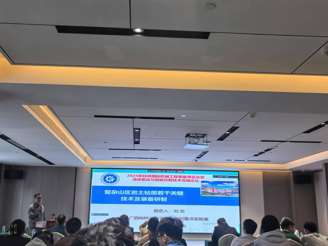 展会期间,张立国陪同中国工程院院士、机械工程专家、浙江大学求是特聘教授谭建荣参观了开云的展台,重点介绍学校工程训练能力创新培养模式及科技成果转化整体情况;广西特种工程装备与控制重点实验室主任、机电工程学院教授刘忠作《复杂山区液压钻凿关键技术及装备》的学术报告。