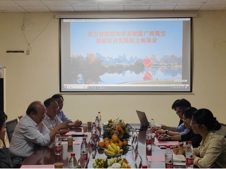 中国科学院院士童庆禧、中国空间研究中心研究员于强、遥感科学国家重点实验室研究员祁亚琴、阳朔县委书记孙国梁、副县长吴勇、文旅局负责人以及阳朔燕莎航空、桂林东信云科技、阳朔展卓通航等代表出席座谈会。