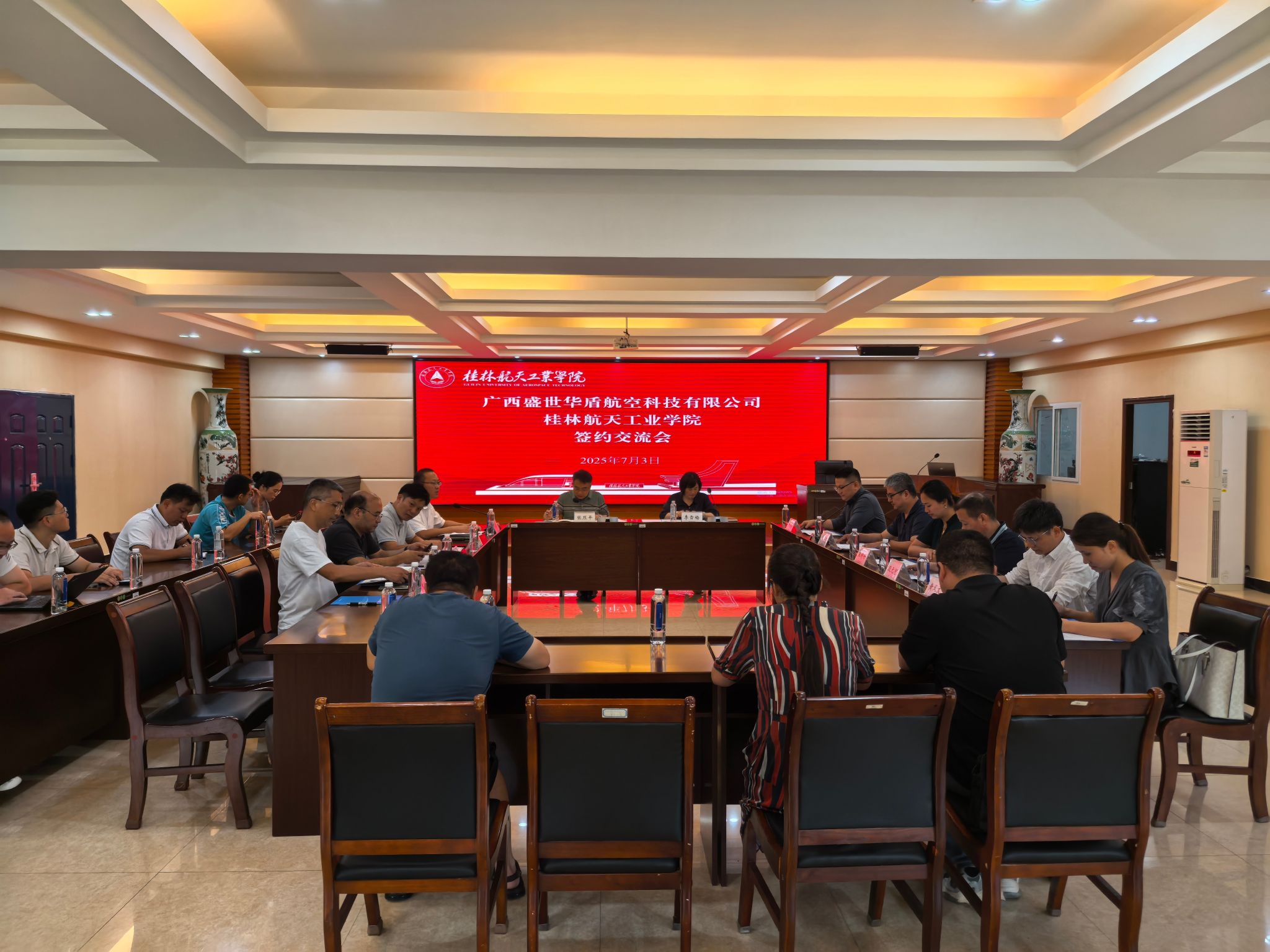 李雪梅董事长对学校在航空航天领域取得的成就给予高度评价。李雪梅表示,盛世华盾作为广西本土航空科技企业,在无人机系统研发、低空安防应用等领域具有市场优势,希望双方充分发挥校企资源互补性,重点围绕低空经济产业链构建、人工智能技术应用等方向开展联合攻关,加速科技成果转化,为广西低空经济发展注入新动能。