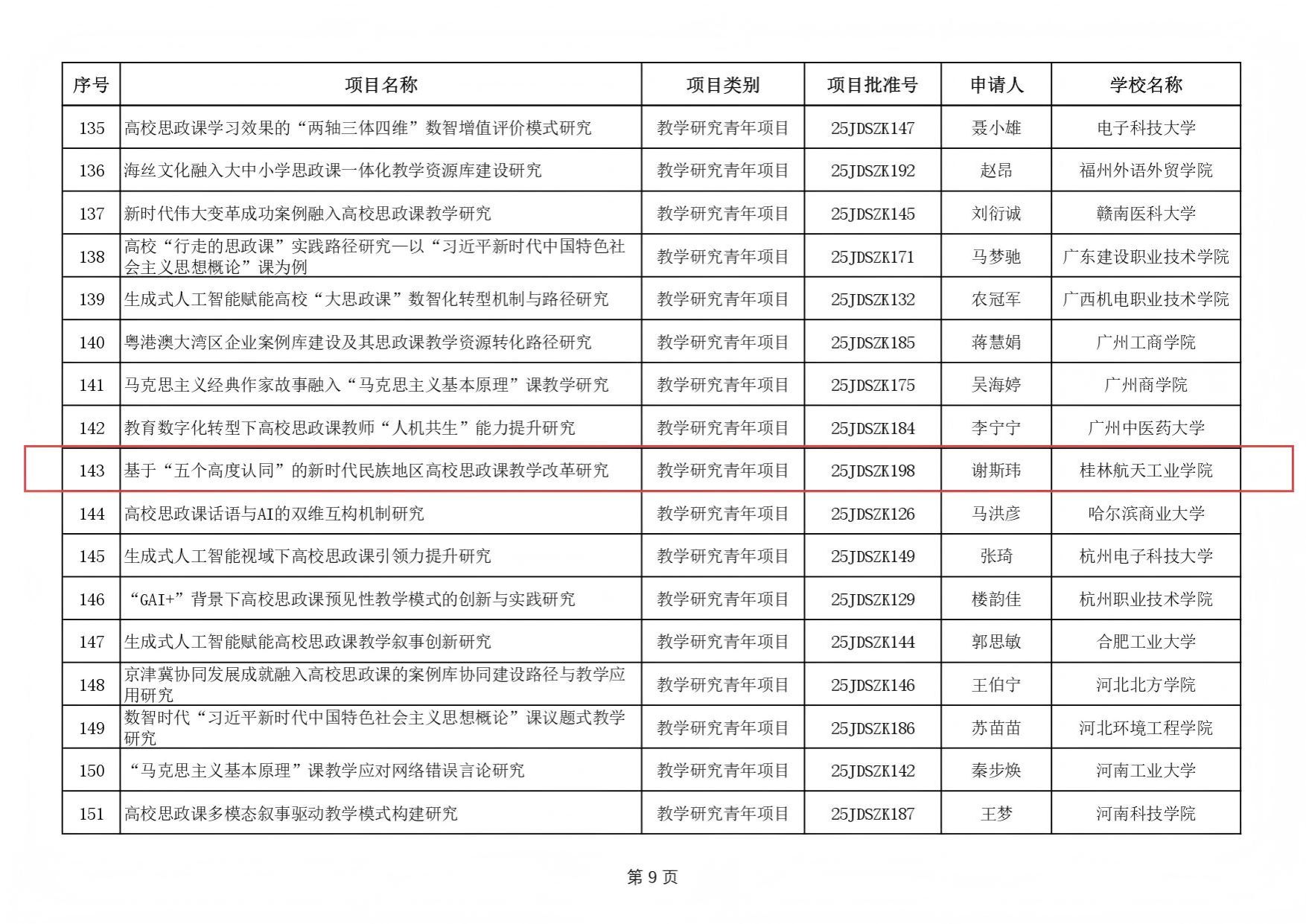 近日,教育部社科司发布了2025年度高校思想政治理论课教师研究专项一般项目立项通知,开云马克思主义学院教师谢斯玮申报的《基于“五个高度认同”的新时代民族地区高校思政课教学改革研究》获批立项。据悉,本次教育部高校思想政治理论课教师研究专项一般项目全国共有198项批准立项。此次立项,是学校深入落实立德树人根本任务,积极推动思政课建设内涵式发展的重要体现。