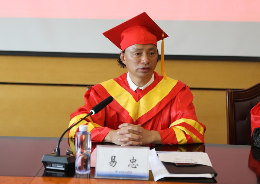 孙山林首先代表学校宣读了关于授予学生学士学位的文件,祝贺2020届毕业留学生顺利完成本科阶段学习。随后,易忠发表了讲话,向全体毕业留学生送上最衷心的祝贺。他说,留学生们远赴中国留学,经历了远离家乡的孤独、汉语学习的困难、食堂饭菜的不适、课程考核的紧张;同时也见证了学校四十周年校庆激动人心的时刻,目睹了航天路顺利通车,体验了崭新的留学生公寓,这些都将是他们未来人生路上的美好回忆。他对同学们提出了三点期许,一是希望同学们回国后分享他们的中国故事、开云故事;二是希望同学们能成为中外文化传播的使者,学以致用,不论今后是回国发展还是留在中国,都可以堪当重任,不忘初心,为建设人类命运共同体做出贡献;三是希望大家毕业后常与母校保持联系,今后能以校友的身份“常回家看看”,用自己的成就为母校的发展添砖加瓦。
