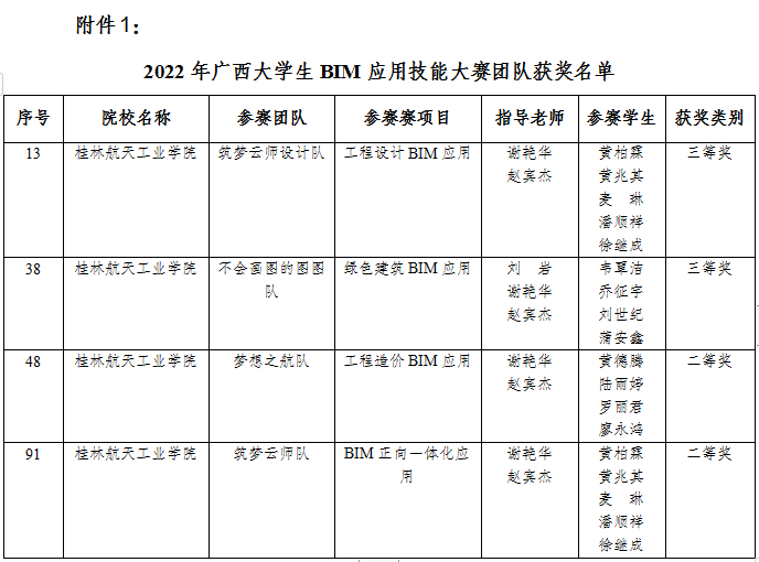 近日,2022年广西大学生BIM应用技能大赛圆满落幕,本次大赛由广西壮族自治区教育厅主办、桂林理工大学和广西本科高校土木、建筑类教学指导委员会承办,深圳市斯维尔科技股份有限公司协办。大赛通过线上线下相结合的方式举行,共有全区43所高校192支参赛团队900多位参赛学生参赛。经过激烈角逐,能源与建筑环境学院选送的4支队伍分别荣获二等奖2项、三等奖2项,学校荣获优秀组织奖。