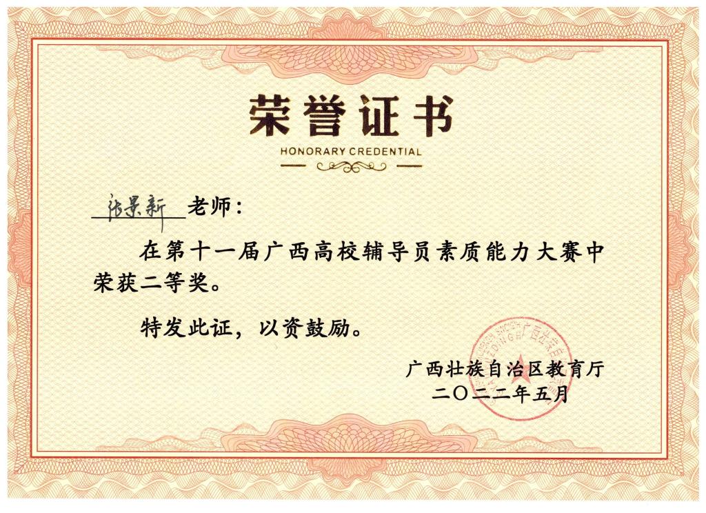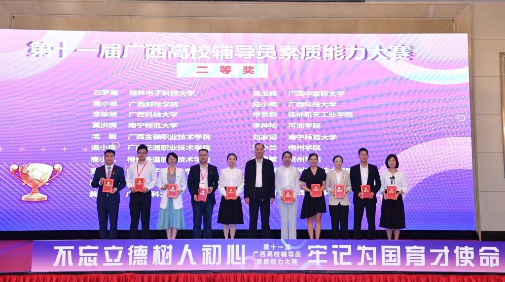 5月11日至14日,由广西壮族自治区教育厅主办,教育部高校思想政治工作队伍培训研修中心(广西师范大学)承办的第十一届广西高校辅导员素质能力大赛在广西师范大学举行,来自全区各高校80余位选手参加比赛。经过激烈角逐,开云管理学院张景新同志代表学校参赛喜获大赛二等奖。