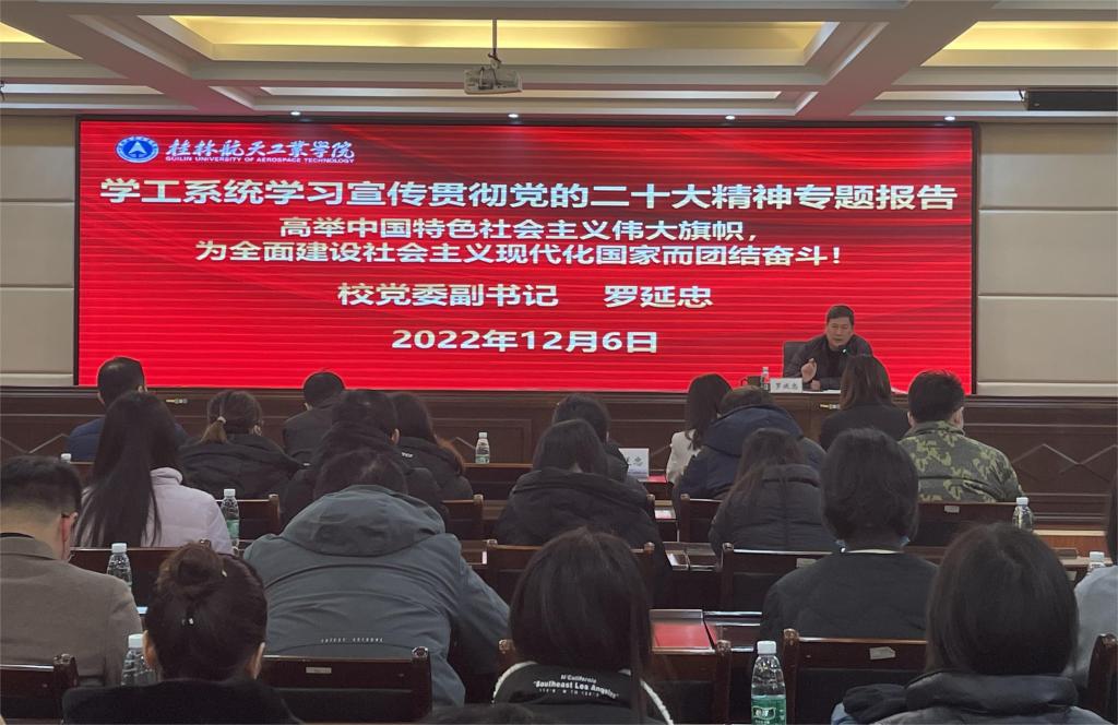 12月7日,学校学工系统在飞天楼520举行学习宣传贯彻党的二十大精神暨学风建设巩固年工作总结会,校党委副书记罗延忠出席会议并做专题报告,学工系统全体干部参加本次会议。