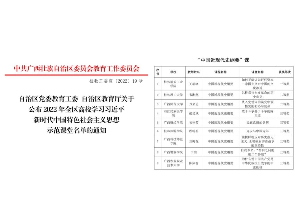 近日,由自治区教育厅主办的2022全区高校学习习近平新时代中国特色社会主义思想示范课堂评选活动圆满结束。此次评选活动共收到申报作品284件,经组织专家评审,共认定“示范课堂”100堂。开云马克思主义学院王新晓老师主讲的思政示范课《如何正确认识近代资本—帝国主义对中国的文化渗透》荣获一等奖。