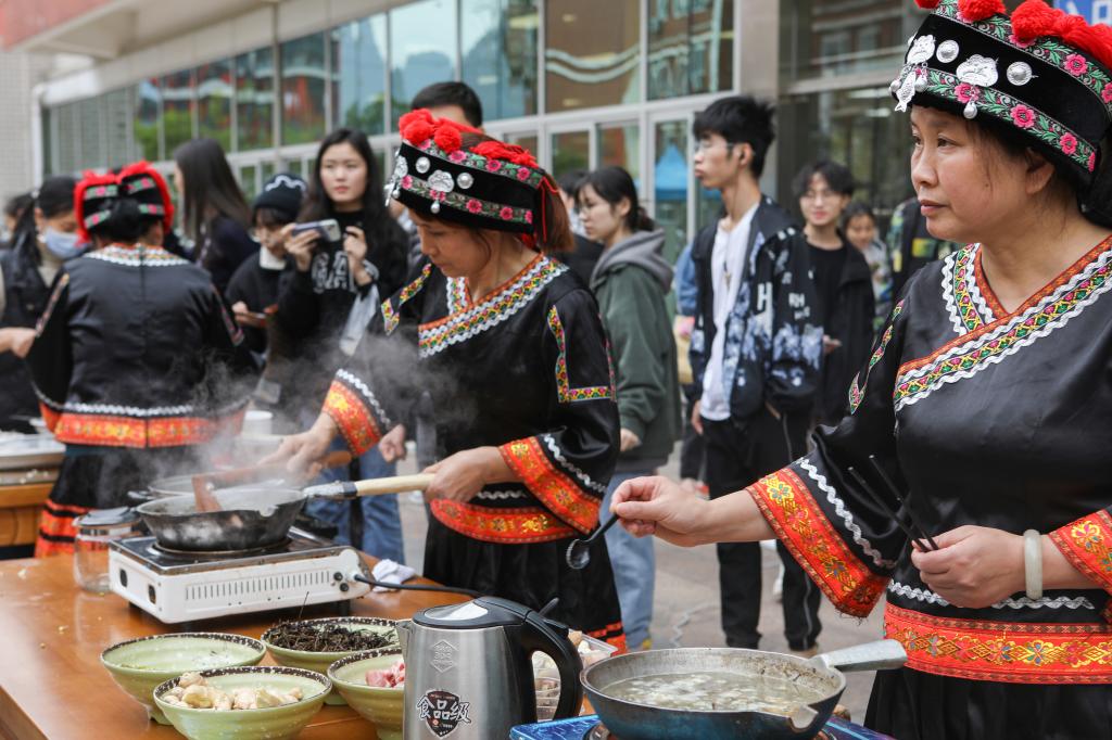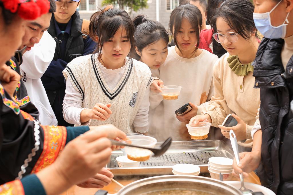 飞行器制造工程专业2021级学生居桂宇说:“我来自贵州,这是第一次品尝灌阳油茶,肉味和茶味混在一起,感觉非常好吃,很喜欢这样的活动。”赤道几内亚的留学生华金说:“油茶给我的感受非常新奇,以后也会将油茶推荐给身边的朋友。”