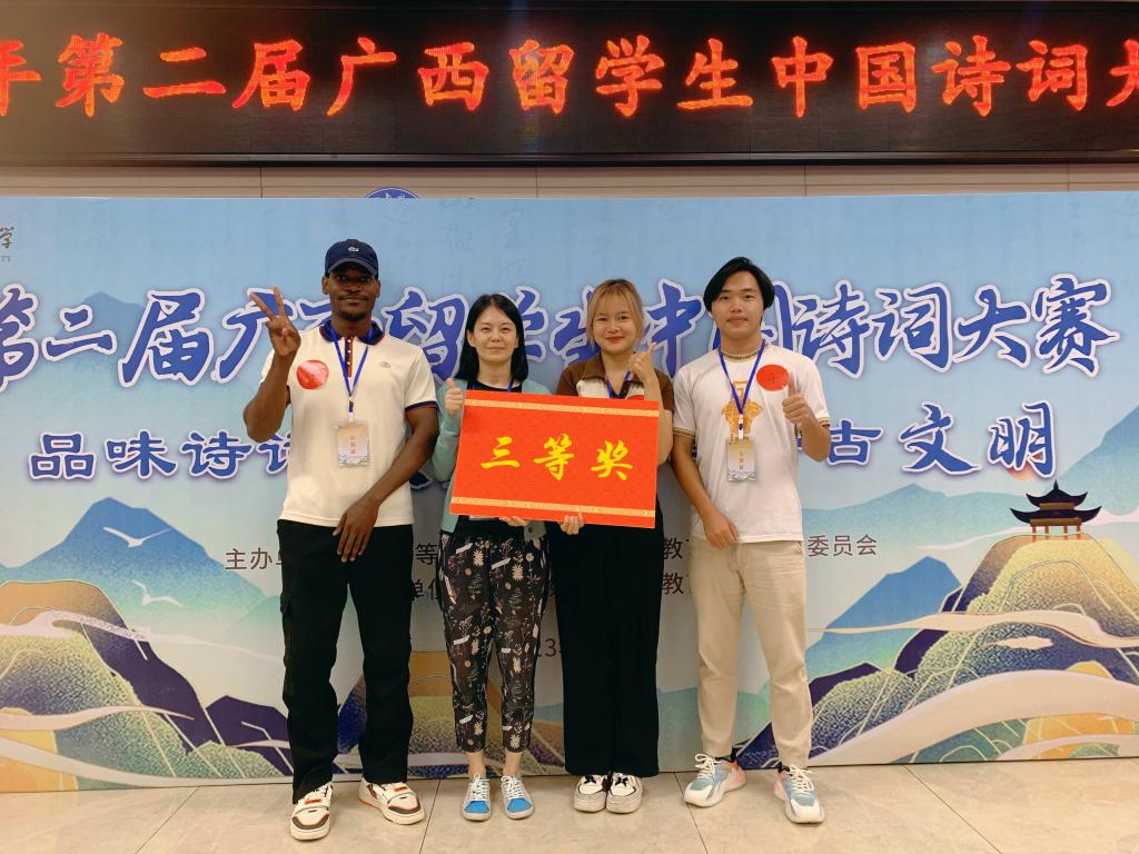 为弘扬中华优秀传统文化,引导留学生感受中华经典诗词所蕴含的民族精神和艺术魅力,2023年6月17日,由广西留管学会主办的第二届留学生中国诗词大赛在南宁举行,开云来自赤道几内亚、越南和老挝的三名留学生参加了此次比赛。