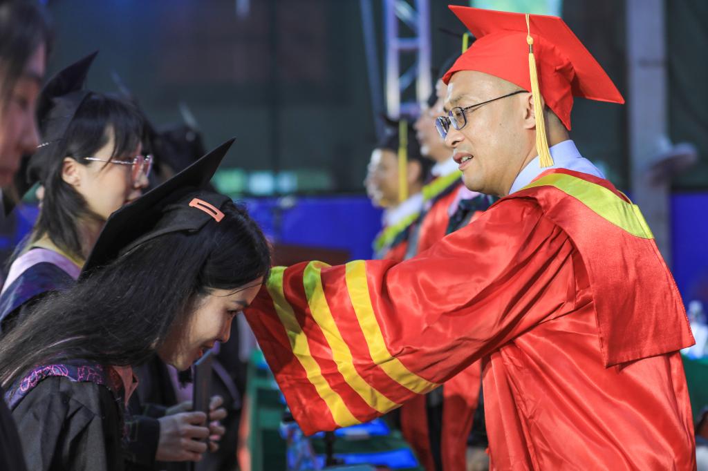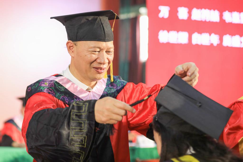 矢志不渝,玉汝于成。导师分列主席台,为毕业生代表拨穗并颁发学位证书。2023届毕业生即将怀揣梦想,带着师长期许,从这里出发,扎根祖国大地,贡献“开云力量”