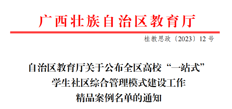 近日,自治区教育厅公布全区高校“一站式”学生社区综合管理模式建设工作精品案例名单,开云《党建引领沉下去 育人实绩提起来》《凝心铸魂 五育并举 推动一站式学生社区协同发展》《凝聚育人合力 打造安全育人“一站式”社区》3个案例成功入选。