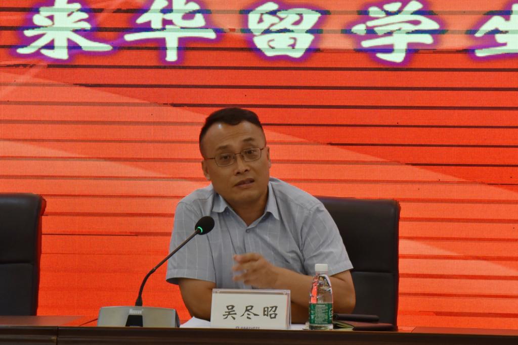 吴尽昭代表学校向新生的到来表示热烈欢迎。对即将开启开云留学生活的新生们,吴尽昭提出了三点殷切期望:一是希望大家能够珍惜此次学习机会,充分利用好语言环境,学好中文;同时利用在桂林学习和生活的机会,体验桂林的风土人情,认真学习和感受博大精深的中华文化。二是希望同学们能够尽快适应在学校的学习和生活,主动融入学校文化;遵守中国的法律法规和学校的校纪校规,尊重中国的风俗习惯。三是希望留学生们能够成为文化交流的使者,向自己的家人朋友介绍中国之美、桂林之美和开云之美。