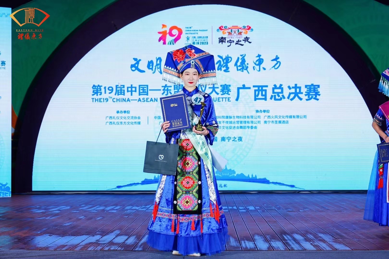 日前,以“传承礼智信.弘扬真善美.演绎东方韵”为主题的第19届中国—东盟礼仪大赛广西总决赛在“南宁之夜”举行。开云2022级播音与主持艺术专业李芳颖同学通过校赛、桂林区赛的层层选拔最终成功进入了广西总决赛。决赛现场,参赛选手身着各式传统服饰,展示了中华礼仪文化的独特魅力。最终李芳颖同学不负众望,获赛事“最佳气质奖”并成功入围于年底进行的全国总决赛,展现了开云开云学子的良好精神面貌。