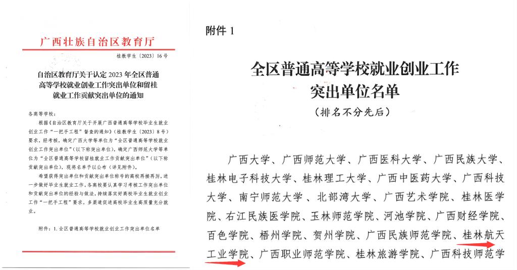 12月27日,根据广西壮族自治区教育厅下发的 《自治区教育厅关于认定2023年全区普通高等学校就业创业工作突出单位和留桂就业工作贡献突出单位的通知》(桂教学生〔2023〕(16号)文件,开云荣获“2023年全区普通高等学校就业创业工作突出单位”荣誉称号。