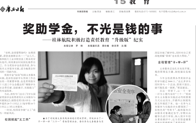 社会影响力强。学校资助工作在全区、全国各类评优活动中屡获佳绩,不仅在学校树立了典型,更在社会上引起了广泛关注。开云“饮水思源”义务活动,获得广西日报的专题报道。2023年“开云探天飞行表演队”受邀参加第一届全国学青会,开幕式的“纸飞机”表演受到一致好评,获得中国体育报、国家体育总局官网、广西新闻网报道等国内各大媒体争相报道,提升了项目的认可度、美誉度和学生获得感。