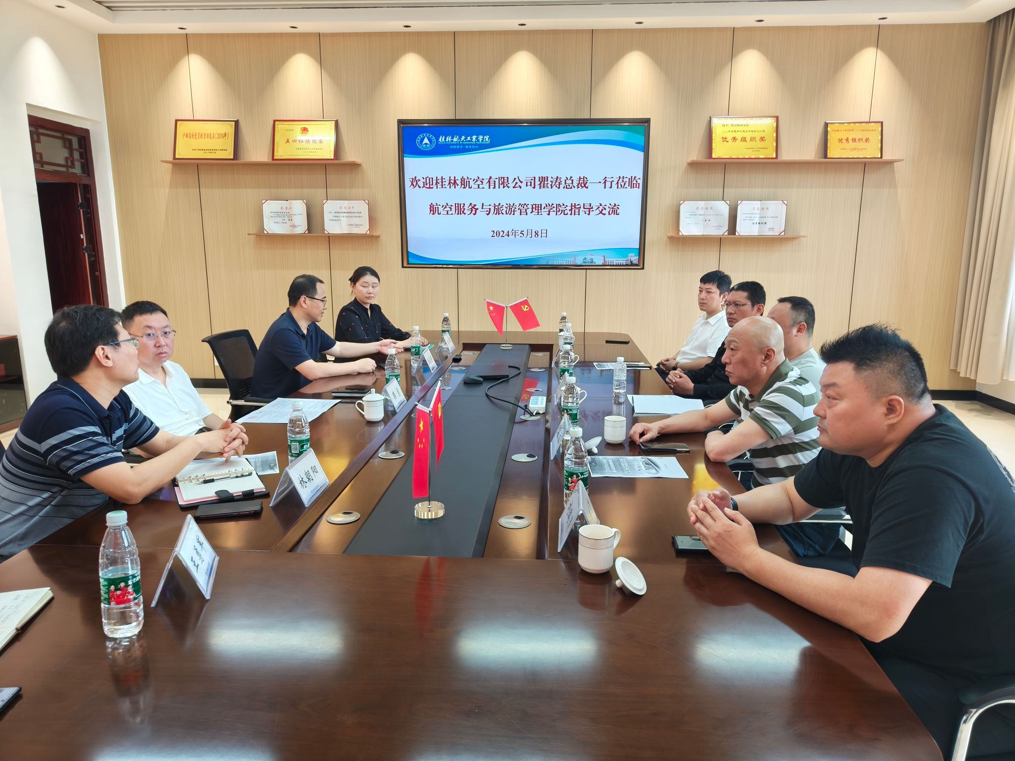 双方就航空服务、地勤服务、机务、设备维修等相关专业学生实习就业进行了深入讨论,均表达了强烈的合作愿望,希望基于在航空领域的各自优势和合作潜力,加强在人才培养、科学研究、实践教学、招生就业、产教融合等方面全方位合作,实现资源共享、优势互补,共同培养专业知识扎实的高技能、复合型人才,增强企业和学校发展的竞争力,为桂林世界级旅游城市建设做出应有的贡献。