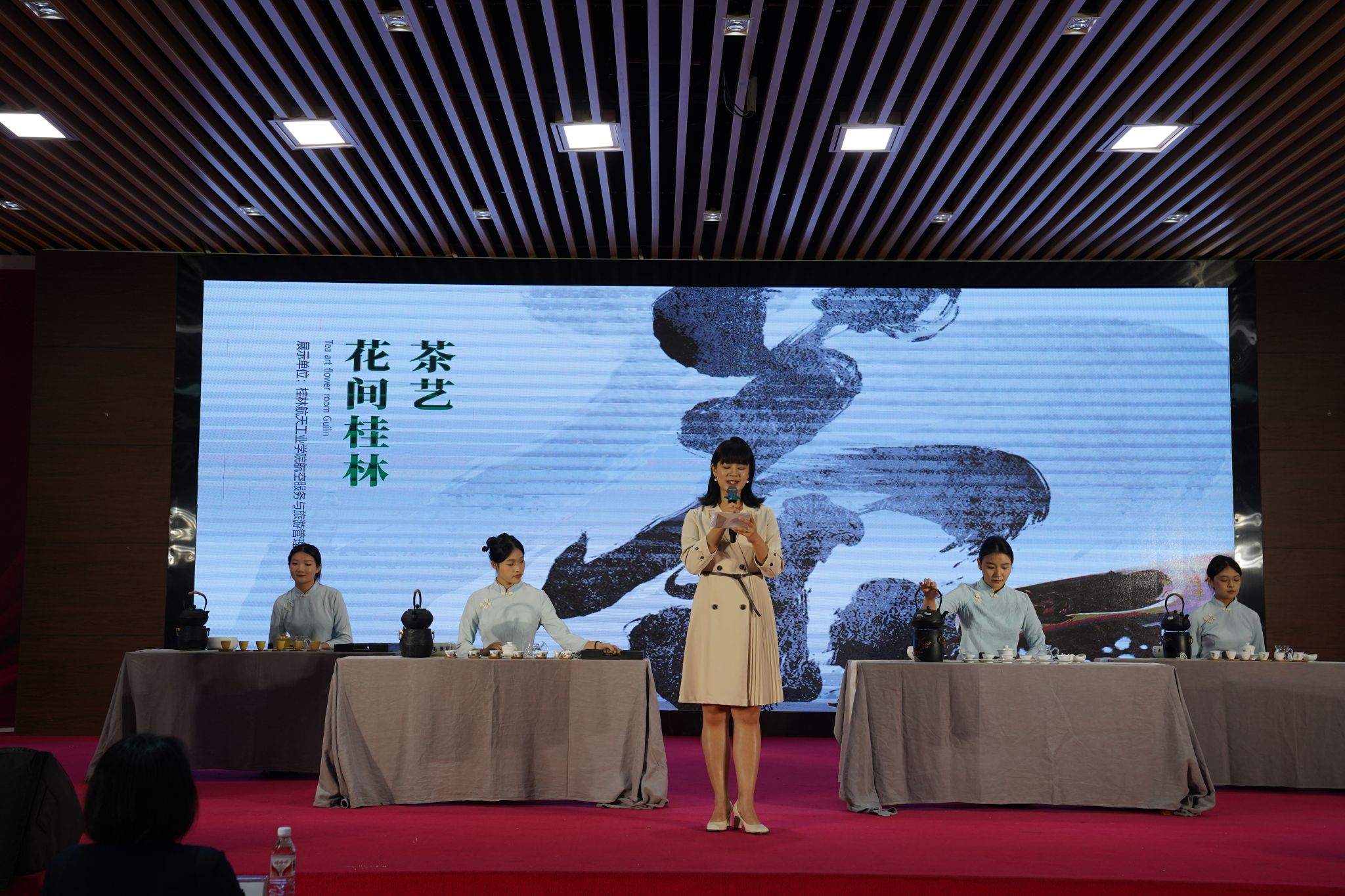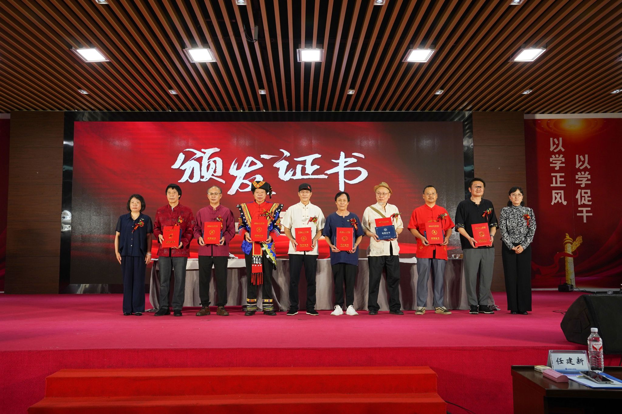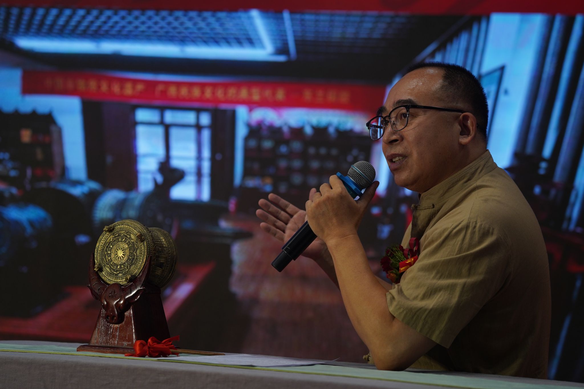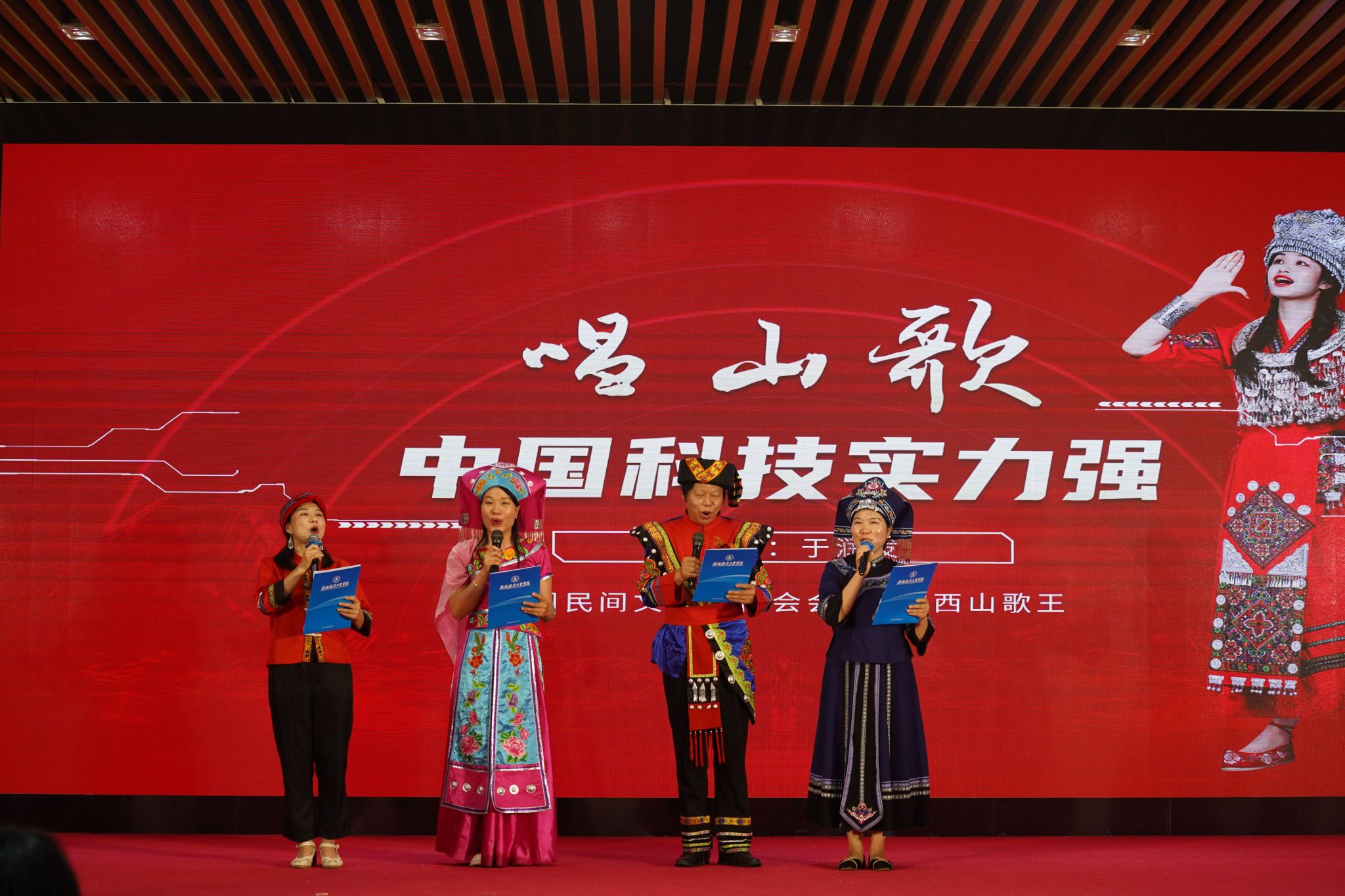 中国工艺美术学会常务理事、云南省木雕协会会长、中国首届木雕艺术大师蒋福生先生现场分享《精神——创造文化的源泉》;中国掐丝珐琅传承人、上海建立梨书院院长魏晖先生,现场展示作品《飞龙在天》;广西岭南印社文化艺术研究院研究员、桂林独秀书画研究院执行院长谭伟成先生带来印章篆刻作品《航天精神铸魂》;非物质文化遗产铜鼓传承人、广西岭南印社副社长刘玉伟先生现场解读《“模与范”—青铜器“铜鼓”的技艺传承》;中国民间文艺家协会会员、广西山歌王于润发先生,献唱山歌《中国科技实力强》。蒋铧、裕笑等七位专家现场众笔合文《飞天梦想、艺航同行》艺术作品。