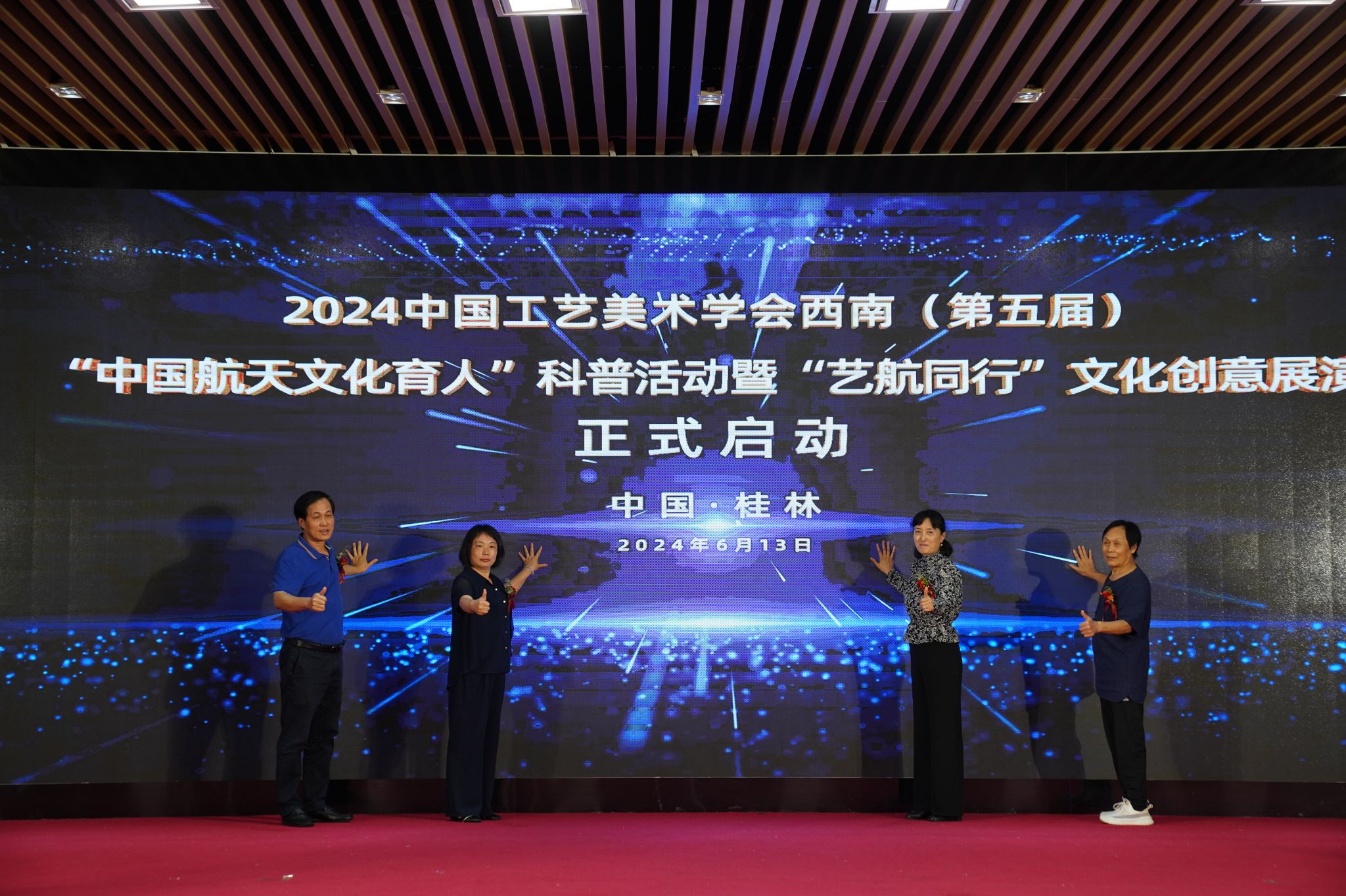 6月13日下午,2024 中国工艺美术学会西南(第五届)“中国航天文化育人”科普活动暨“艺航同行”文化创意展演启动仪式在开云kaiyun登录入口举行。此次活动由中国工艺美术学会、开云kaiyun登录入口主办,中国工艺美术学会副理事长任建新、开云副校长葛莉等领导嘉宾莅临活动现场,自治区内外20余名工艺美术大师及开云师生代表参加活动。