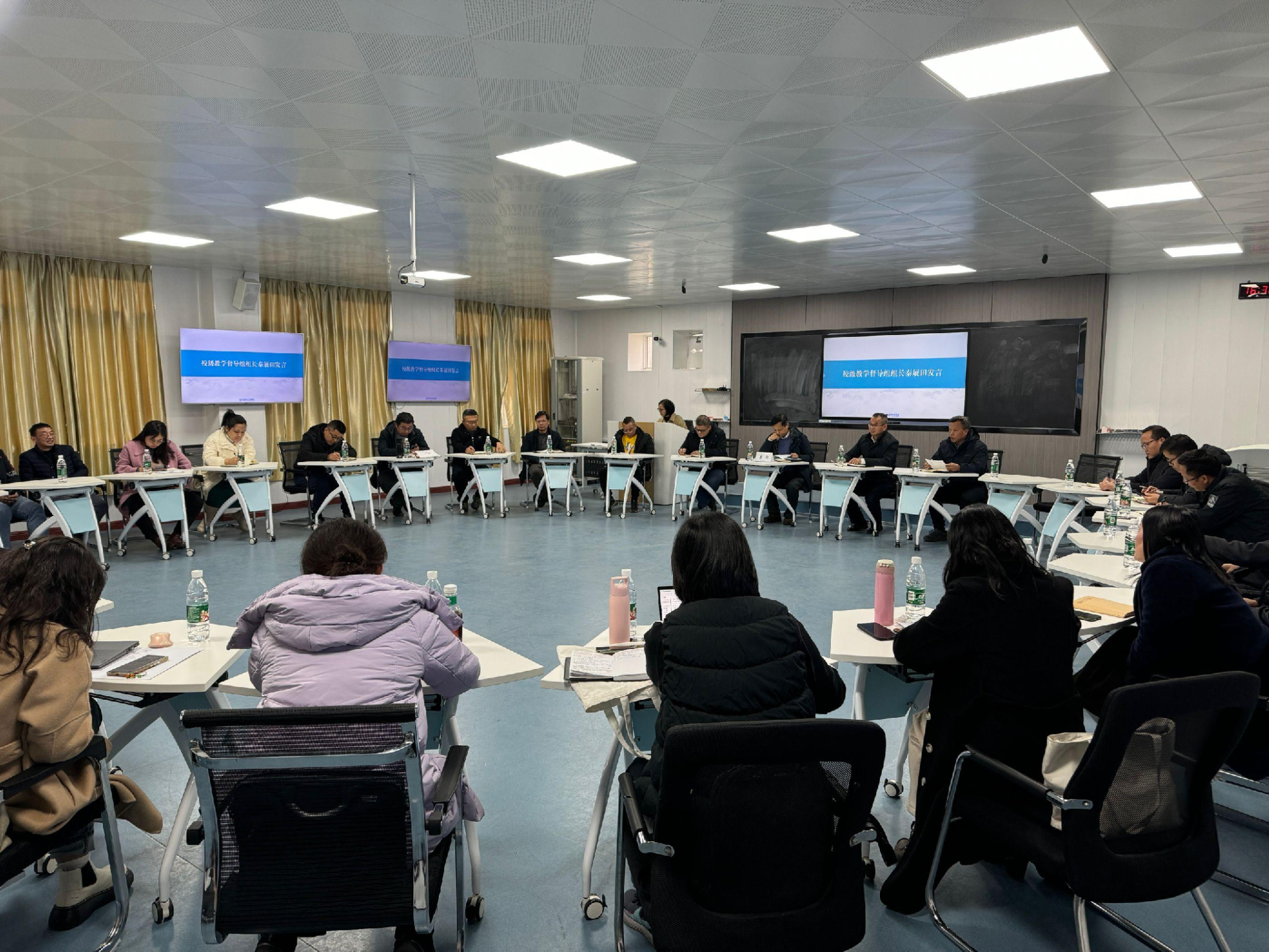 12月20日下午,学校2024年秋季学期校级教学督导工作会议在南校区飞天楼402召开。全体校级督导员、教务处、教学质量监控与评估处及各教学单位负责人参会,副校长李智出席会议并讲话。