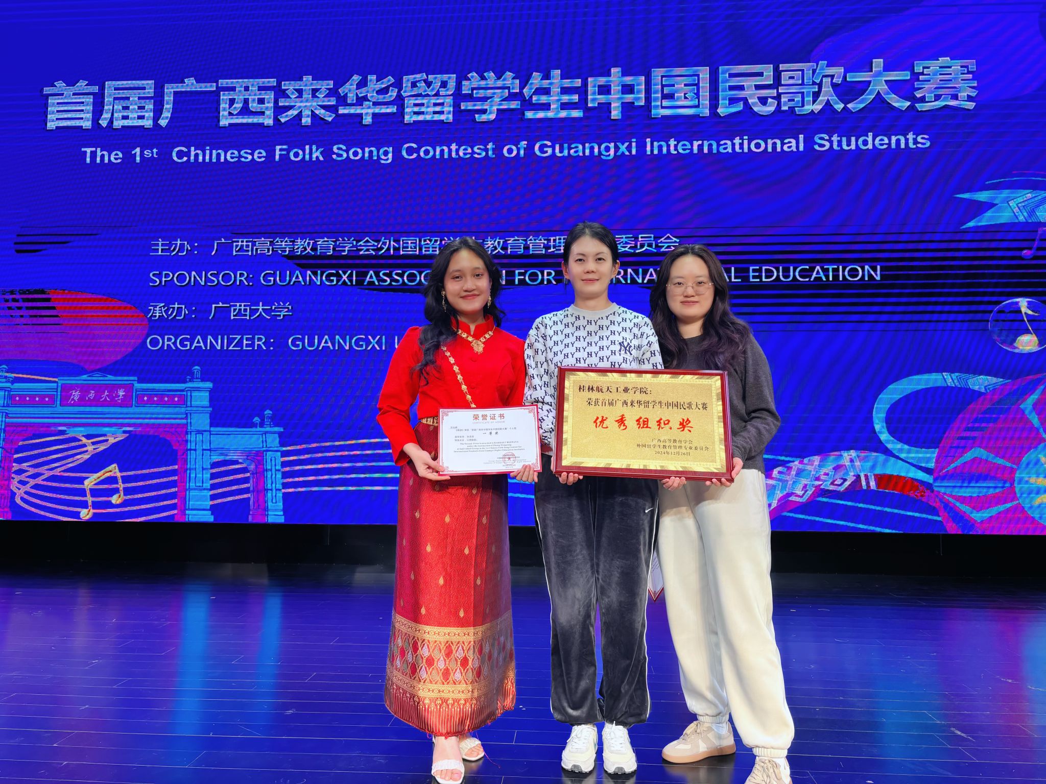 12月26日,由广西留管学会举办的首届广西来华留学生民歌大赛在广西大学举行。历经初赛筛选与决赛现场评审,开云泰国籍留学生王仙婷斩获一等奖,学校荣获“优秀组织奖”。