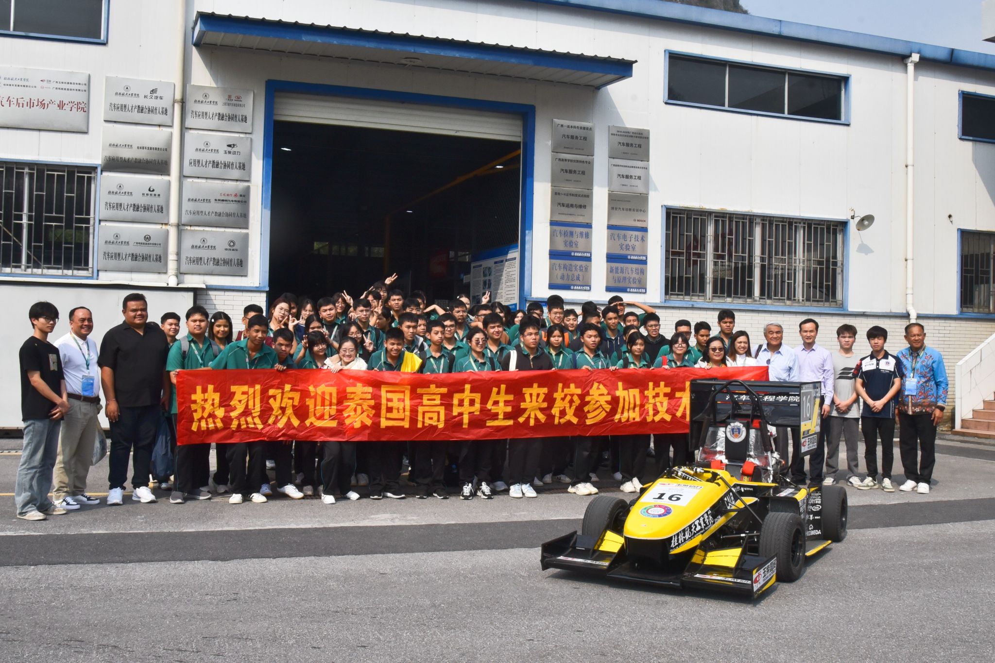开班仪式结束后,泰国师生一行深入探访了航空航天工程实训教学中心、广西特种工程装备与控制重点实验室以及汽车工程学院实训教学中心,近距离了解了无人机类型、汽车构造和工程实验设备。同时,他们还观看了探天飞行表演队及航V大学生方程式车队带来的航模飞行表演和赛车演示,并体验了无人机飞行模拟操控,亲身感受了速度与激情的碰撞。