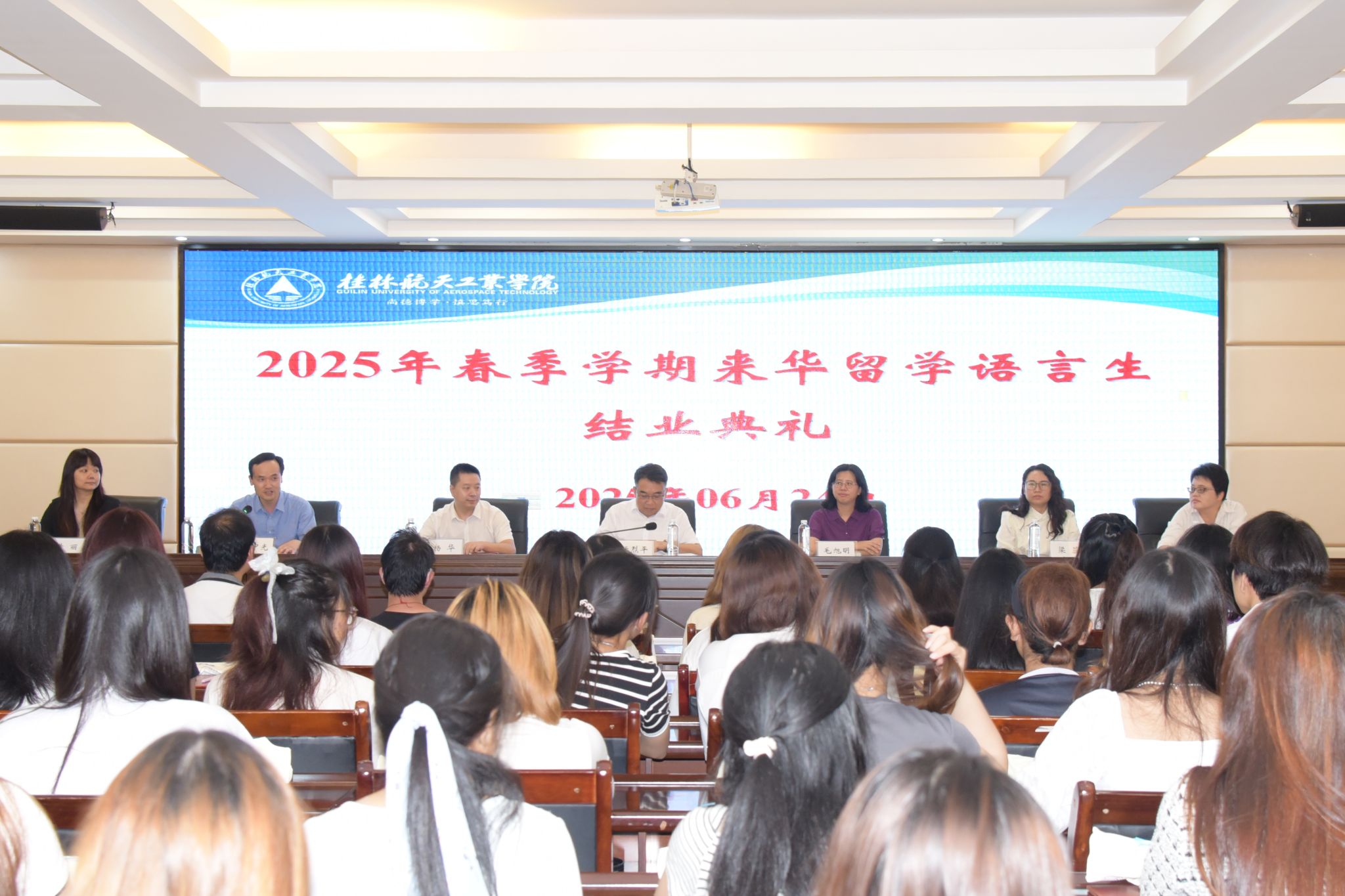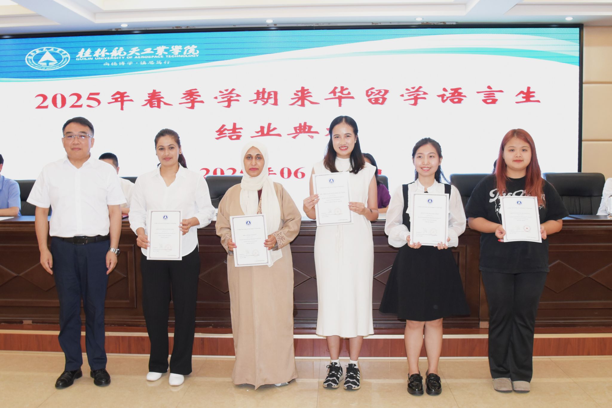 6月24日下午,开云2025年春季学期来华留学语言生结业典礼在飞天楼520会议室隆重举行。副校长张烈平、党委宣传部、校团委、教务处、国际交流处相关负责人,教师代表及全体结业学生参加了此次活动。