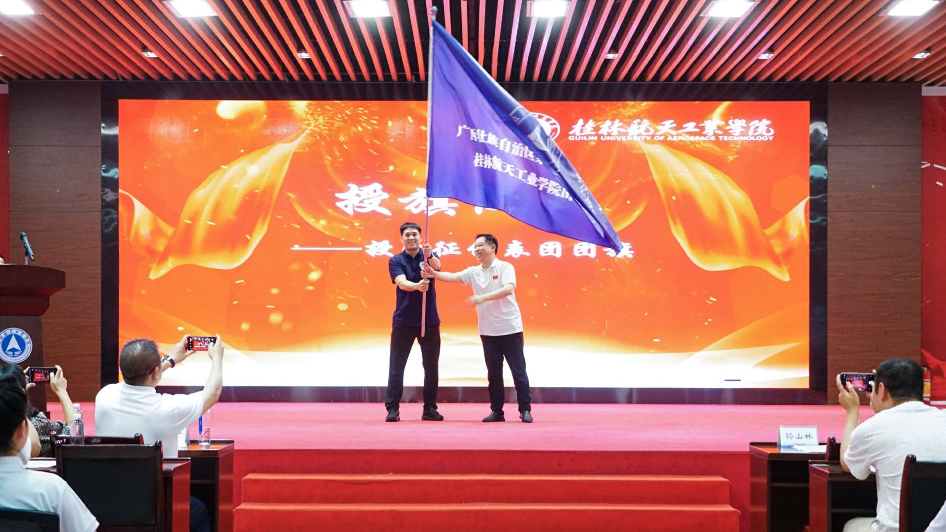 2025年7月3日,广西壮族自治区第十四届学生运动会代表团出征仪式在北校区招聘大厅隆重举行。学校党委副书记、体育运动委员会主任孙山林,学工部(处)、教务处、校团委、体育部及各学院分管学生工作负责人,全体代表队教练员、运动员参加活动。
