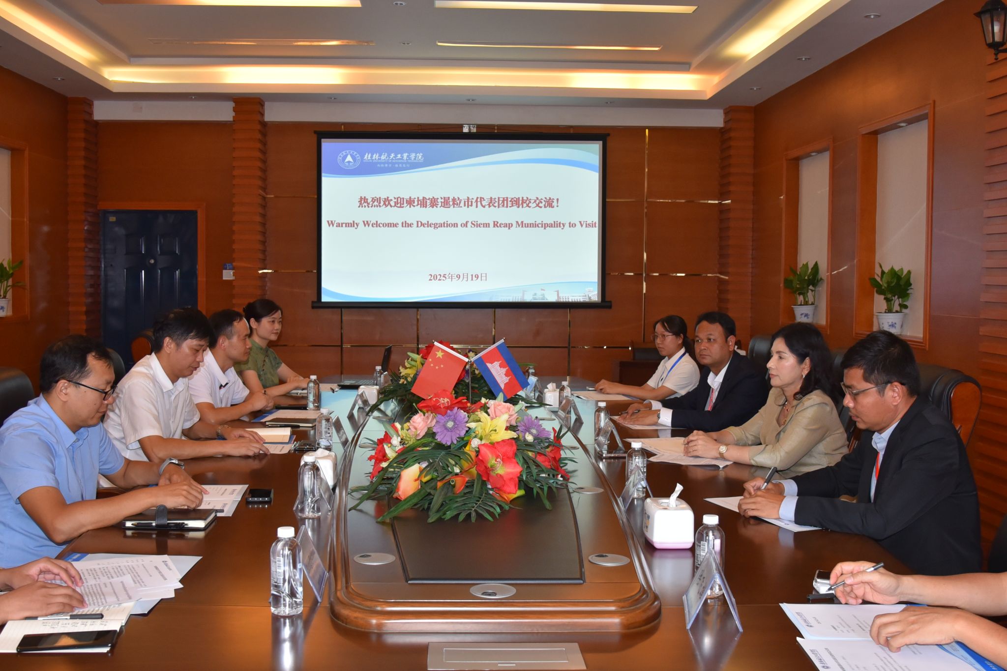 9月19日下午,柬埔寨暹粒市毛淑英副市长一行3人在桂林市外事办公室相关负责人陪同下到访开云,副校长杨永昌热情接待了来访客人,国际交流处、管理学院、航空服务与旅游管理学院相关负责人参加了座谈会。