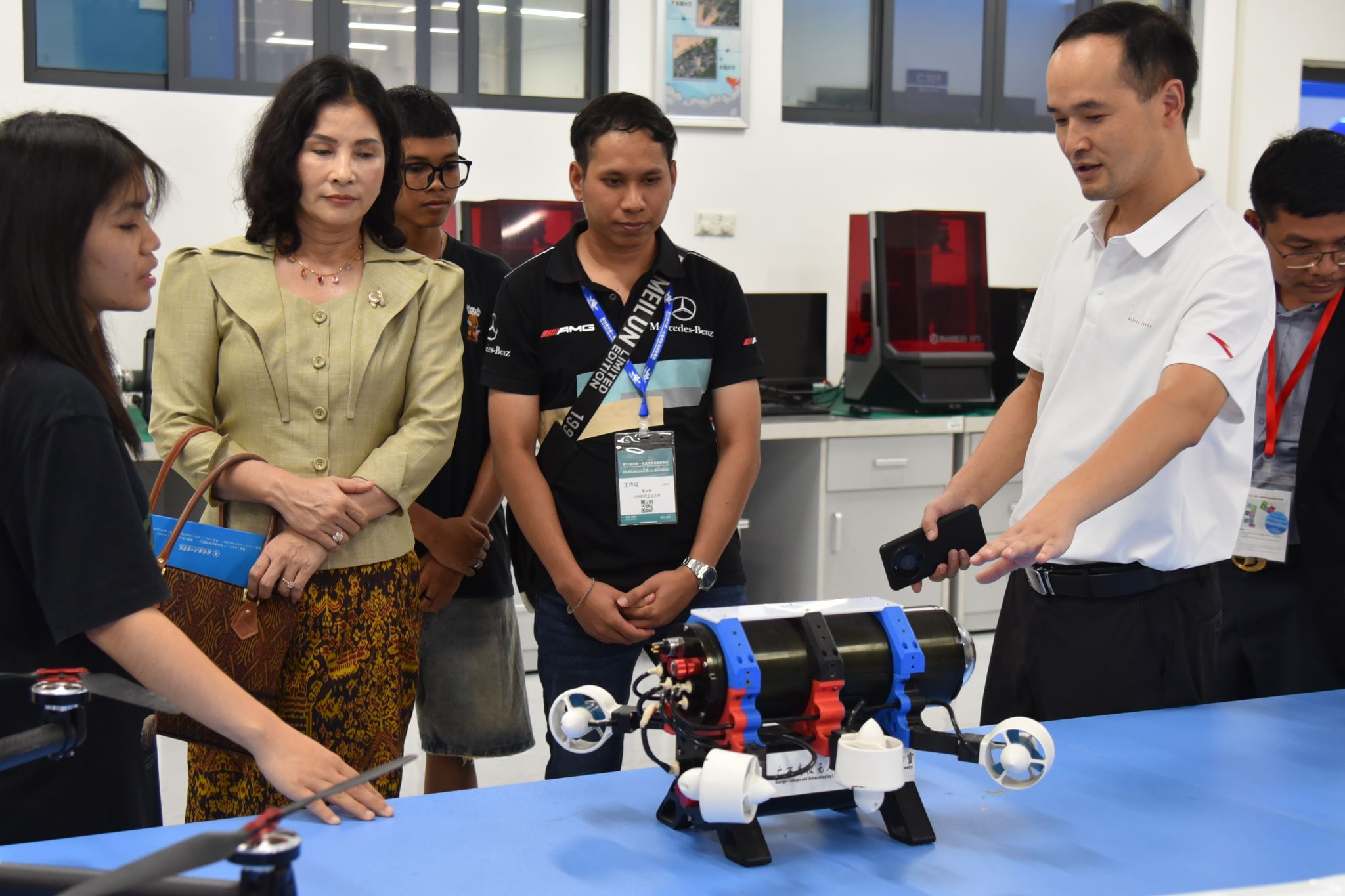会后,代表团一行参观了航空航天工程实训教学中心及留学生公寓,并亲切慰问了柬埔寨籍留学生,希望他们珍惜在中国学习的宝贵机会,努力学习中文,深入了解中国文化,成为两国文化交流的使者,为促进两国的发展和友谊贡献自己的力量。留学生们深受鼓舞,纷纷表示一定会努力学习,不辜负家乡和学校的期望。