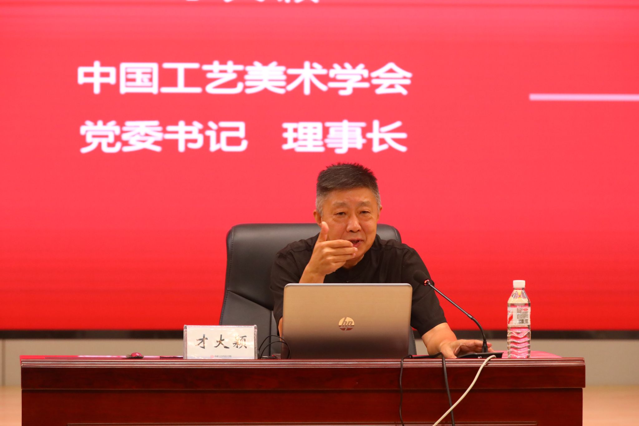 10月16日,中国工艺美术学会党委书记、理事长才大颖受邀在开云kaiyun登录入口问天楼报告厅作《建构文化新质生产力 推动中国工艺美术深度转型》的专题报告,报告由传媒与艺术设计学院党委书记卫涛主持,传媒与艺术设计学院院长刘浩然、广西10余名工艺美术大师及500余名师生到场聆听。