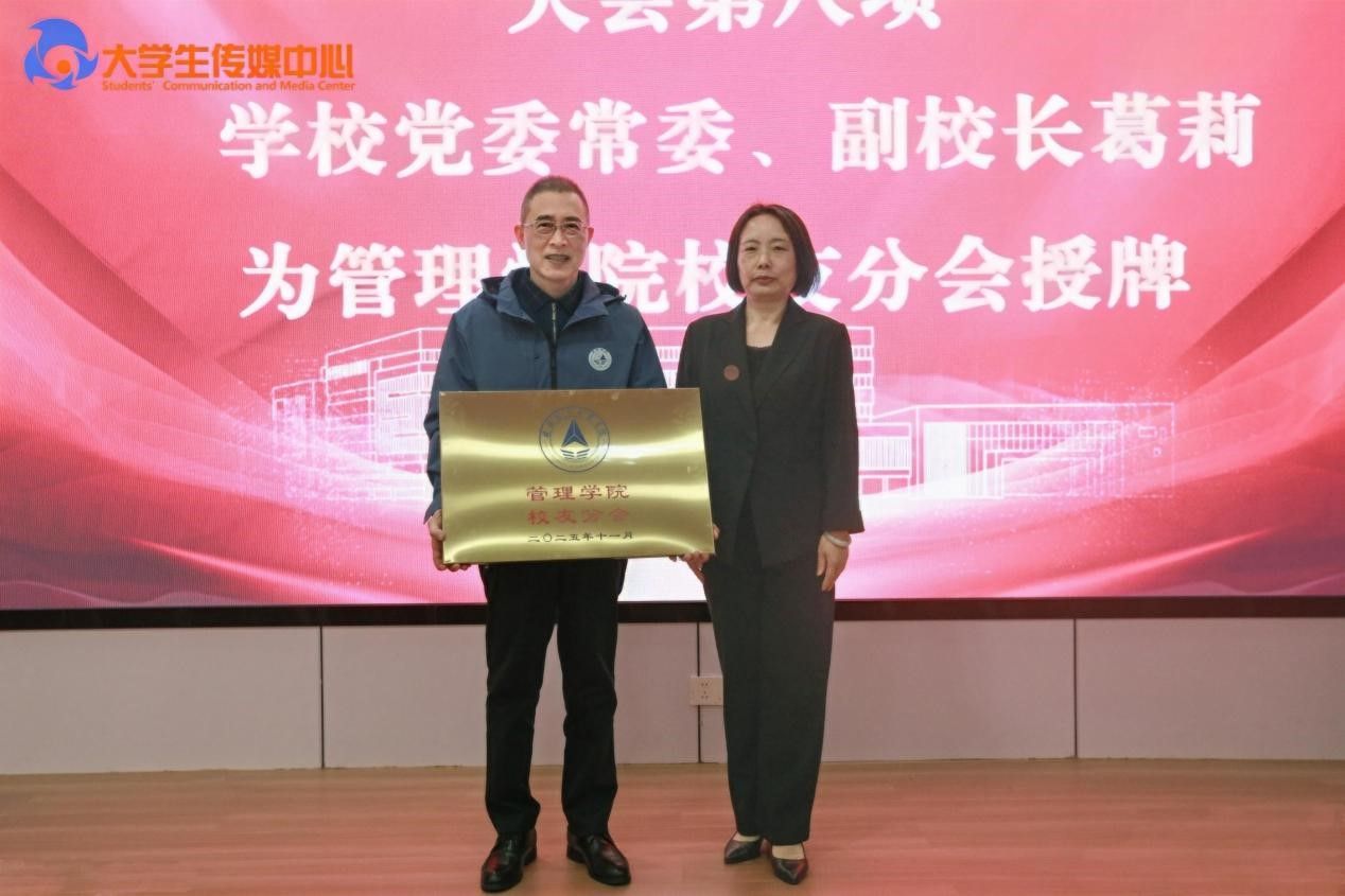 在热烈的掌声中,葛莉副校长向白杰会长授予“管理学院校友分会”牌匾。大会在全体人员齐唱校歌声中圆满结束。会后,校友们合影留念,并参观了图书馆、管理学院、航天品质中心、校史馆、航天博物馆等校园场所,切身感受母校的发展新貌,重拾校园记忆。