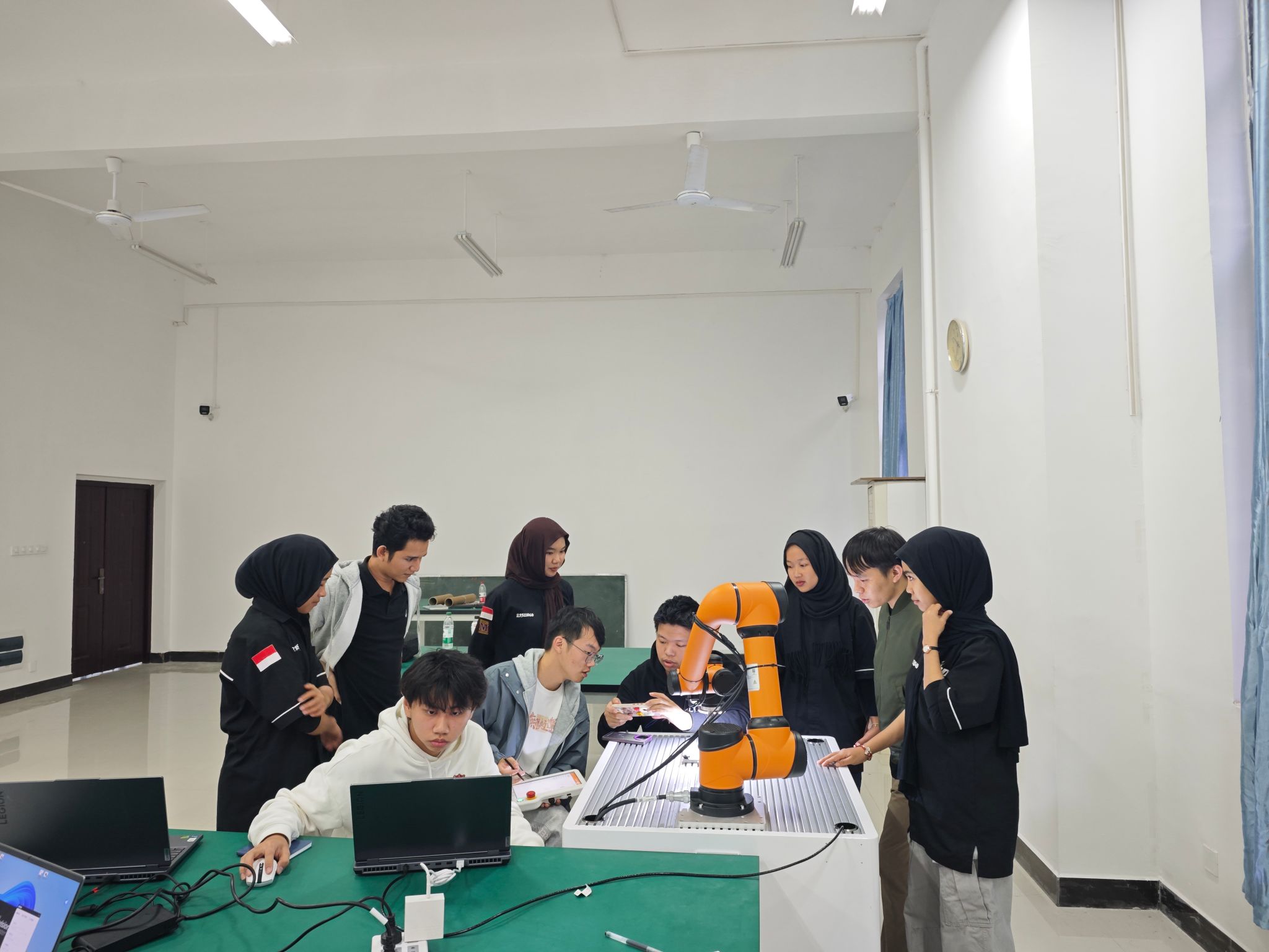 在国际交流处的大力支持下,机电工程学院首次赛事就组织了一支国际化的参赛队伍。学院精心选拔了6名智能制造工程专业的中国学生与4名印度尼西亚留学生,混编组成两支参赛队伍,这也是我院学生首次与国际队友携手参与机械类国家级竞赛。在备赛过程中,团队克服语言与文化差异,深度融合理论知识与工程实践。参赛学生在熊中刚、黄都伟等老师的指导下,进行了多轮集中攻关与模拟演练,重点锤炼了在智能精密装配任务中的技术应用能力与跨国团队协作能力。